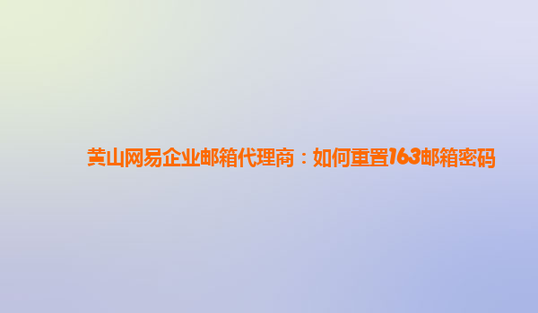 2024-03-15黄山网易企业邮箱代理商:如何重置163邮箱密码 在日常生活中,我们可能会忘记邮箱密码,这时候需要进行密码重置操作。下面,我们就来介绍一下如何重置网易企业邮箱的密码。 步骤一:进入网易企业邮箱登录页面 首...