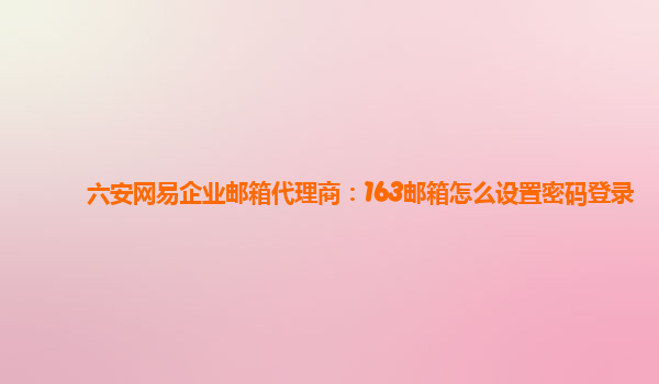 2024-03-15如何设置密码登录网易企业邮箱 作为六安网易企业邮箱代理商,我们致力于为企业提供更加稳定可靠的企业邮件服务。下面我们将介绍如何设置密码登录网易企业邮箱。 步骤一:打开网易企业邮箱登录页面 首先在浏览器输入...