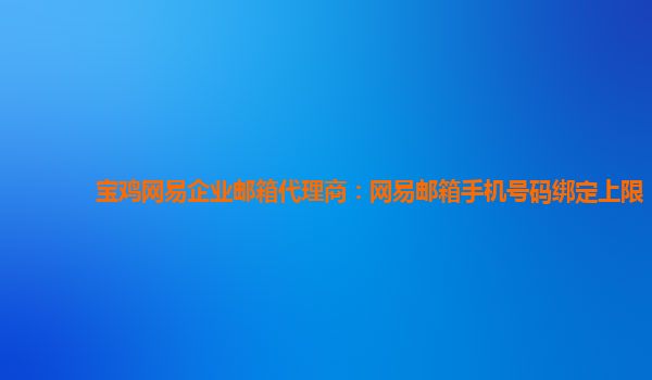 2024-03-15宝鸡网易企业邮箱代理商:网易邮箱手机号码绑定上限 作为一家专业的企业邮箱服务提供商,宝鸡网易企业邮箱代理商一直致力于为客户提供高效、可靠、安全的企业邮箱服务。在这里,我们不仅可以帮助您解决各种企业邮箱...