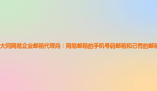 2024-03-15大同网易企业邮箱代理商:网易邮箱的手机号码邮箱和已有的邮箱有什么区别 什么是手机号码邮箱? 手机号码邮箱是指以手机号码为用户名创建的邮箱账号,使用手机号码加上一定的后缀作为邮箱地址,例如13812345678@163...