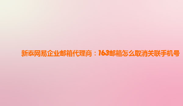2024-03-15如何取消关联手机号码 新泰网易企业邮箱代理商:163邮箱怎么取消关联手机号呢? 作为一款广受欢迎的企业邮箱,网易企业邮箱在方便快捷地提供全面的邮件解决方案的同时,也为用户提供了一系列便利的服务。其中,关联...