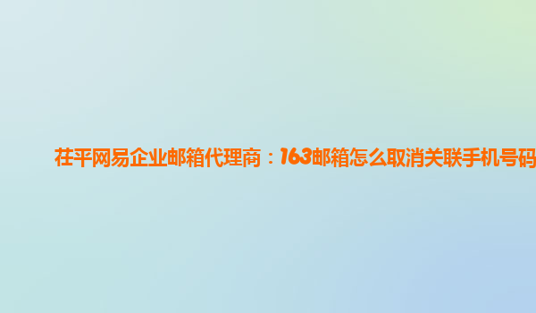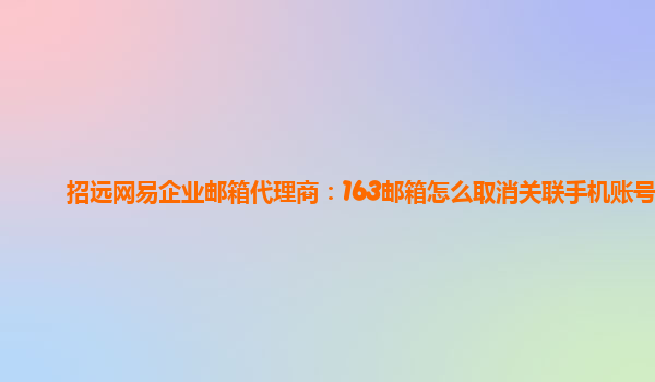 2024-03-15招远网易企业邮箱代理商:163邮箱怎么取消关联手机账号 如果您在使用163企业邮箱时,想要取消关联手机账号,可以按照以下步骤操作: 登录您的163企业邮箱账号。 在页面右上角找到“设置”按钮,点击进入设置...