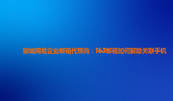 2024-03-15正文:对于使用163企业邮箱的用户来说,绑定手机是必须要做的一件事情。然而,当需要更换手机或取消绑定时,不少人却不知道应该如何操作。本文就为大家介绍邹城网易企业邮箱代理商:163邮箱如何解除关联手机,让您轻...