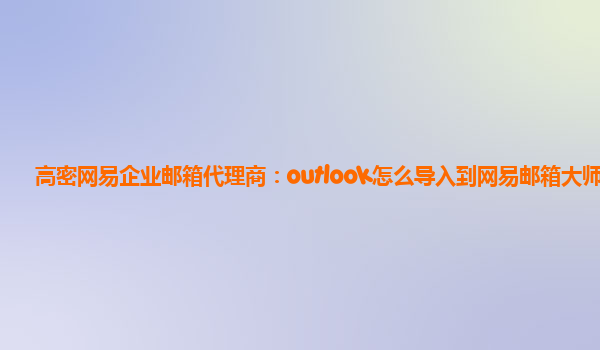 2024-03-15高密网易企业邮箱代理商:outlook怎么导入到网易邮箱大师 在日常工作中,我们经常会发现需要将outlook中的邮件或联系人导入到网易邮箱大师中,在这里我们来简单介绍一下具体的操作步骤。 将outlook邮件导入到网易...