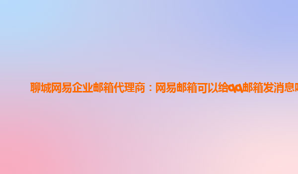 2024-03-15聊城网易企业邮箱代理商:网易邮箱可以给qq邮箱发消息吗 网易企业邮箱优势: 网易企业邮箱有着稳定的服务器,保障了邮件的正常收发。同时,网易企业邮箱也提供了海量的空间容量,能够满足企业大量邮件存储的需求。...