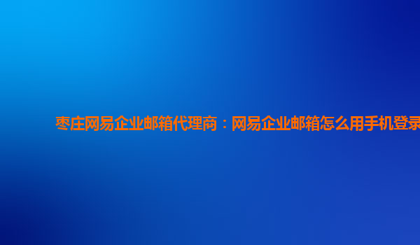 枣庄网易企业邮箱代理商:网易企业邮箱怎么用手机登录 随着移动互联网的发展,越来越多的人开始使用手机来查阅邮件。作为一款领先的企业级邮件解决方案,网易企业邮箱自然也提供了手机登录的功能。 要使用手机登录...