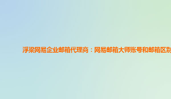 2024-03-14网易企业邮箱代理商:网易邮箱大师账号和邮箱区别及优势 网易邮箱大师账号和企业邮箱的区别 网易邮箱大师账号是指注册了网易邮箱大师后获取的一种账号,主要用于网易自身的服务使用。而企业邮箱则是指企业购买的,...