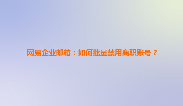 随着企业的发展与人员流动,很多公司都面临着管理大量邮箱账号的挑战。尤其是对于离职员工的邮箱账号,如果不及时禁用,可能会导致数据泄露、信息泄漏等安全问题。因此,及时批量禁用离职账号是企业邮箱管理中一项至关重要的任务。本文将详细介绍如何通过网易企业邮箱批量禁用离职员工的邮箱账号,并探讨网易企业邮箱及其代理商的优势。
