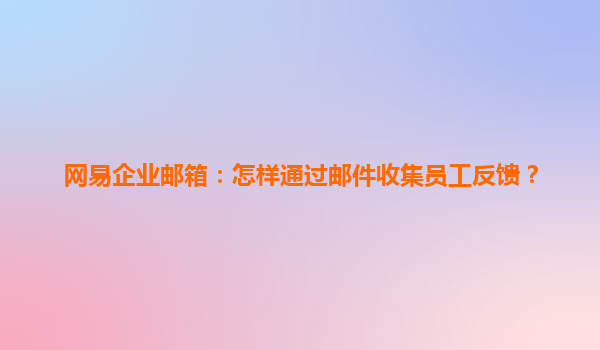 在现代企业管理中,收集员工反馈是提升团队凝聚力、改善工作环境和推动企业发展的重要手段。网易企业邮箱凭借其高效、便捷的功能,成为了许多企业进行员工反馈收集的理想工具。本文将探讨如何通过网易企业邮箱来高效收集员工反馈,并结合其优势和好用之处,帮助企业更好地进行内部沟通与管理。