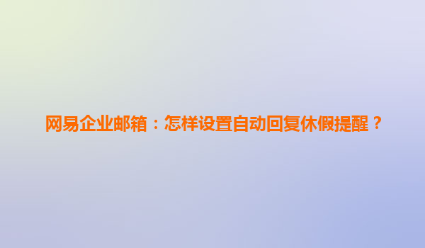 网易企业邮箱作为一款功能强大的企业邮件系统,具备高可靠性、安全性和易用性,成为了众多企业日常办公的得力助手。通过设置自动回复休假提醒功能,员工可以在休假期间避免因无法及时回复邮件而引发的困扰,确保工作沟通的顺畅。设置该功能既简单又高效,是企业邮箱管理中不可忽视的细节。希望本文提供的设置步骤和建议能帮助您更好地管理您的网易企业邮箱,让您的工作更加轻松高效。