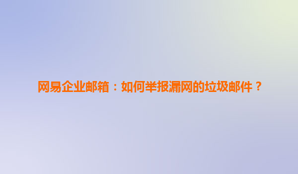 网易企业邮箱:如何举报漏网的垃圾邮件?