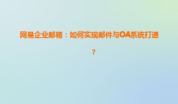 网易企业邮箱:如何实现邮件与OA系统打通?