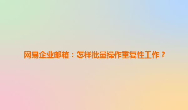 随着企业规模的不断扩大以及数字化转型的加速,批量操作已成为现代企业邮箱不可或缺的重要能力。网易企业邮箱凭借其功能全面、操作便捷、安全可靠等独特优势,为企业在联系人管理、邮件处理、账户运维等多个方面提供了高效解决方案。通过智能化、批量化的工作方式,不仅极大提升了企业整体运营效率,也为员工节省了宝贵的时间和精力。选择网易企业邮箱,让您的企业沟通协作迈向更高台阶!