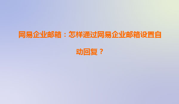 设置自动回复是网易企业邮箱中一个非常实用的功能,可以在你暂时无法查看邮件时,自动向发信人发送预设的回复信息。具体设置步骤如下: