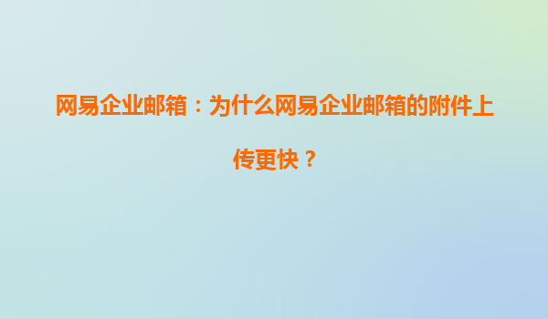 网易企业邮箱:为什么网易企业邮箱的附件上传更快