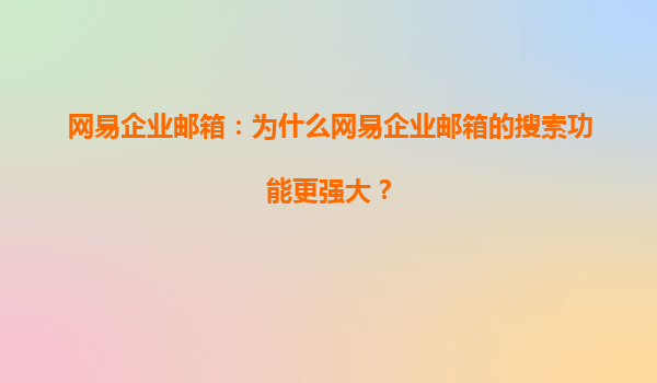 网易企业邮箱:为什么网易企业邮箱的搜索功能更强大?
