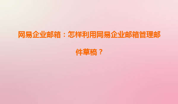 高效管理邮件草稿的利器:网易企业邮箱全攻略