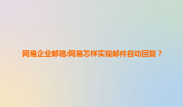 网易企业邮箱:智能化邮件自动回复功能详解与操作指南