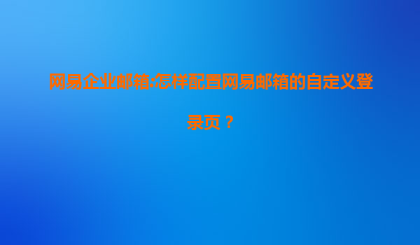 网易企业邮箱:怎样配置网易邮箱的自定义登录页?