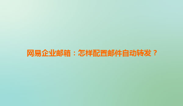网易企业邮箱:邮件自动转发配置指南