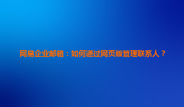 在现代商业环境中,高效的通信和联系人管理是企业成功的关键因素之一。网易企业邮箱作为国内领先的企业邮箱服务提供商,不仅提供了稳定可靠的邮件收发功能,还配备了强大的联系人管理系统,帮助企业用户轻松管理客户、合作伙伴和同事的联系信息。