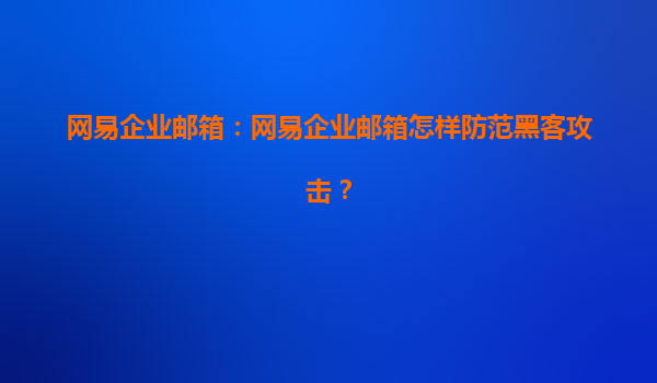 在数字化时代,企业邮箱作为沟通协作的核心工具,其安全性至关重要。网易企业邮箱凭借强大的技术实力和丰富的实战经验,构建了一套完善的安全防护体系,有效抵御各类黑客攻击,成为众多企业的放心之选。