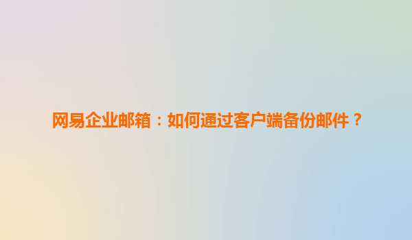 网易企业邮箱作为国内领先的企业级邮件服务提供商,不仅拥有稳定高效的邮件收发功能,还提供了便捷的邮件备份服务。通过客户端备份邮件,可以有效防止数据丢失,保障企业通信安全。本文将详细介绍如何通过客户端备份网易企业邮箱邮件,并探讨网易企业邮箱的优势。