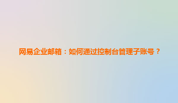 网易企业邮箱的控制台提供了丰富的子账号管理功能,以下是具体操作步骤:
