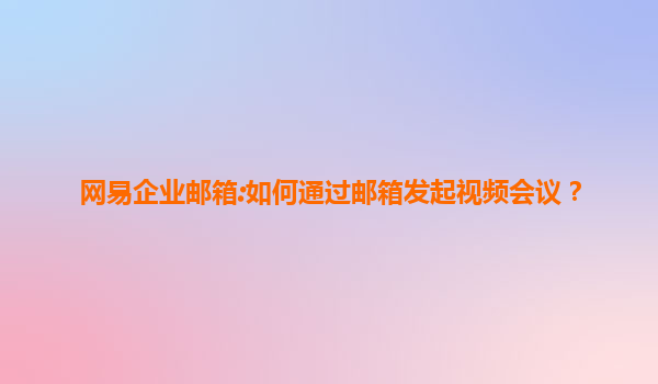 网易企业邮箱:如何通过邮箱发起视频会议?