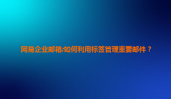 在当今快节奏的商业环境中,高效管理邮件是企业提高工作效率的关键。网易企业邮箱作为国内领先的企业邮箱服务商,提供了强大的标签管理功能,帮助企业用户快速分类、标记和检索重要邮件,从而优化工作流程,提升沟通效率。本文将详细介绍如何利用标签管理重要邮件,以及网易企业邮箱在这一功能上的优势。