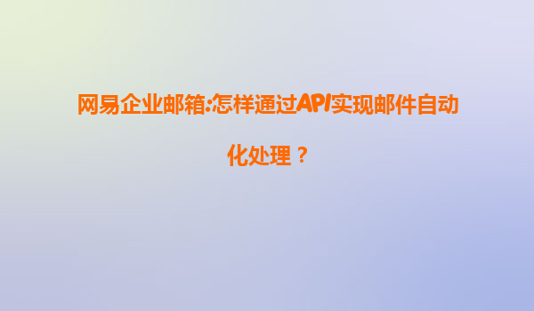 网易企业邮箱:如何通过API实现邮件自动化处理