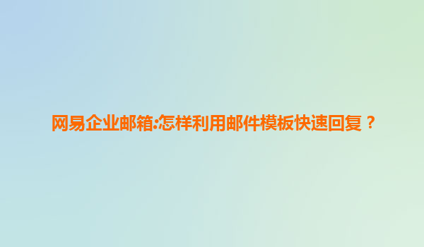 网易企业邮箱:如何利用邮件模板快速回复