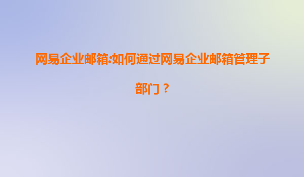 网易企业邮箱:如何通过网易企业邮箱管理子部门?