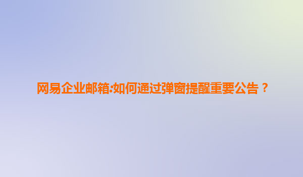 网易企业邮箱:如何通过弹窗提醒重要公告?