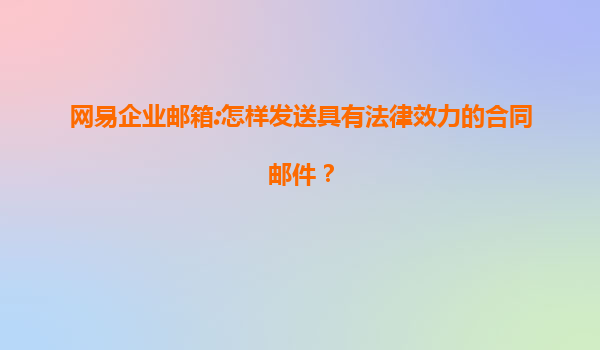 网易企业邮箱:如何发送具有法律效力的合同邮件?
