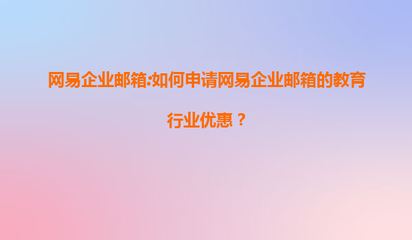 网易企业邮箱:教育行业优惠申请指南及使用体验分享