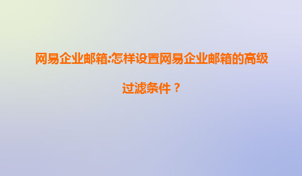 网易企业邮箱高级过滤条件设置指南