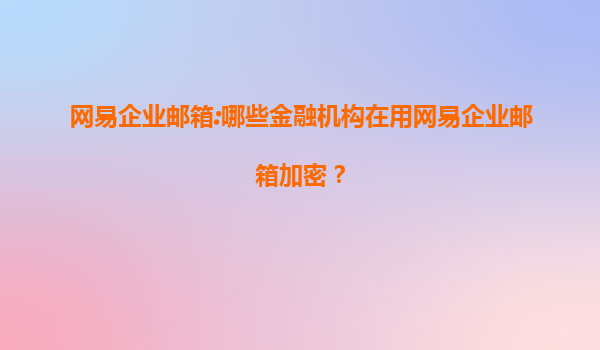 一、金融机构为何青睐网易企业邮箱?