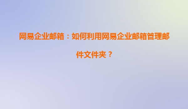 网易企业邮箱:如何利用网易企业邮箱管理邮件文件夹?