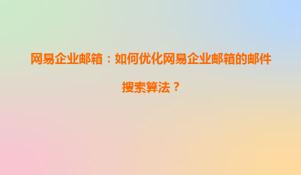 网易企业邮箱:如何优化网易企业邮箱的邮件搜索算法?