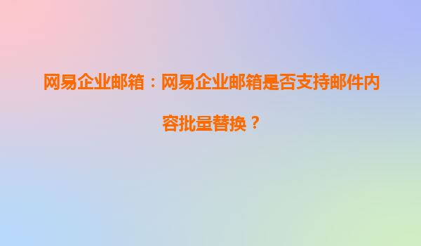 虽然网易企业邮箱没有直接提供邮件内容批量替换功能,但其强大的邮件管理系统、智能过滤规则和开放的API接口,为企业提供了多种替代解决方案。结合网易企业邮箱在安全性、稳定性和移动办公方面的优势,它仍然是企业通信管理的理想选择。对于有批量处理需求的用户,可以通过现有功能组合或API开发来实现目标,同时享受网易企业邮箱带来的全方位优质服务。