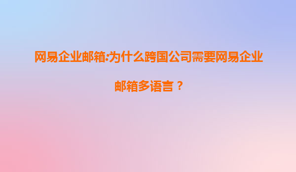 网易企业邮箱:为什么跨国公司需要网易企业邮箱多语言?
