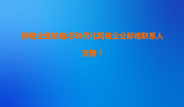 在企业日常运营中,高效的邮箱管理尤其是联系人管理,对提升沟通效率和团队协作至关重要。网易企业邮箱作为国内领先的企业邮箱服务商,凭借强大的功能、稳定的性能和便捷的操作,成为众多企业的首选。本文将重点介绍网易企业邮箱在联系人管理方面的优势,并提供优化联系人管理的实用建议。