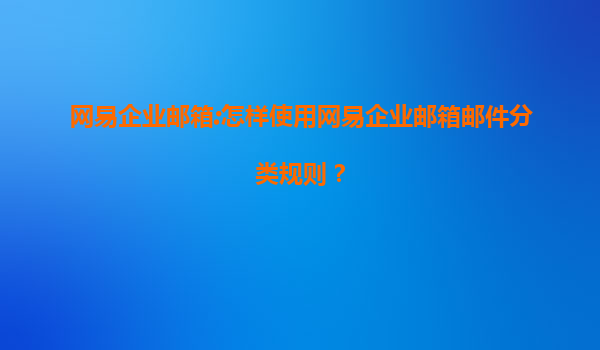 网易企业邮箱:高效管理邮件的分类规则使用指南