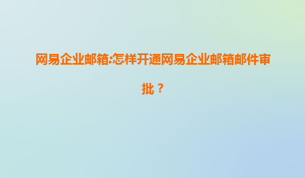 网易企业邮箱:怎样开通网易企业邮箱邮件审批功能?