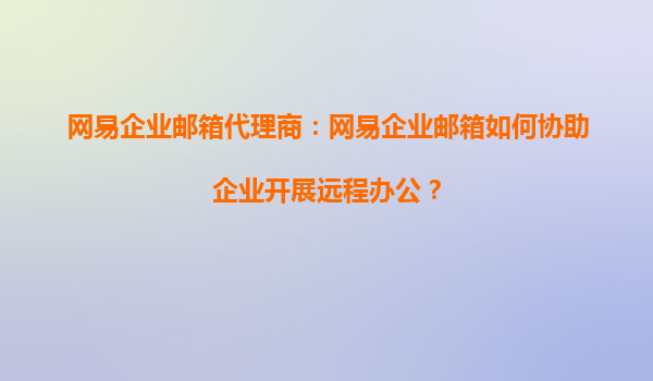 网易企业邮箱代理商:网易企业邮箱如何协助企业开展远程办公?