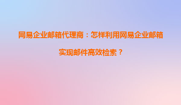 网易企业邮箱代理商:怎样利用网易企业邮箱实现邮件高效检索?