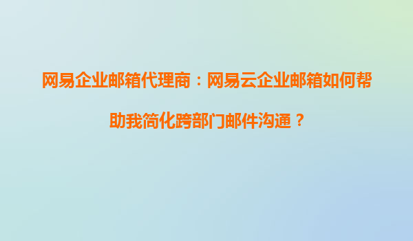 网易企业邮箱代理商:网易云企业邮箱如何帮助我简化跨部门邮件沟通?