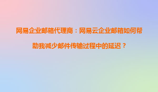 网易企业邮箱代理商:网易云企业邮箱如何帮助我减少邮件传输过程中的延迟?