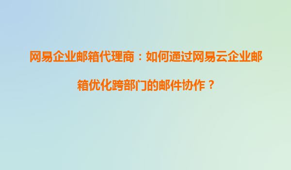 网易企业邮箱代理商:如何通过网易云企业邮箱优化跨部门的邮件协作?